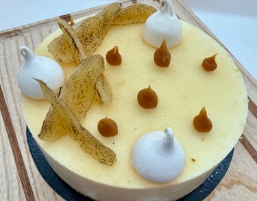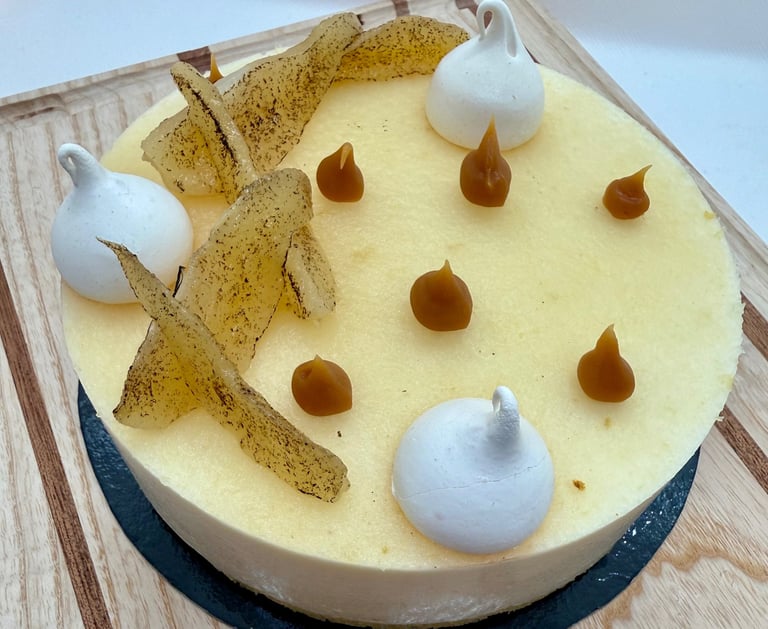 Cette création associe textures fondantes, notes fruitées et douceur caramel.